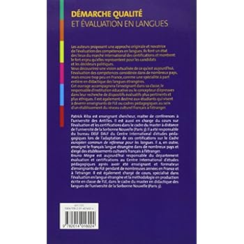 Organisation générale de l'ouvrage :PréfaceIntroduction Chapitre 1 : Place et rôle de l'évaluationChapitre 2 : La démarche qualité en évaluationChapitre 3 : Etude de cas Chapitre 4 : La démarque qualité en classe de langue : petit guide pratiqueAnnexes Glossaire commenté : aperçu lexicologique et étymologiqueBibliographie Index notionnelIndex référentiel des auteurs et des institutions clésObjectifs et démarche pédagogique :Les auteurs proposent une approche originale et novatrice de l'évaluation des compétences en langues. Ils font un état des lieux du marché international des certifications et montrent le fort enjeu qu'elles représentent pour les candidats et les décideurs politiques.Vous découvrirez une version actualisée de ce qu'est aujourd'hui, l'évaluation des compétences considérée dans de nombreux pays, mais encore trop peu en France, comme une spécialité à part entière en didactique des langues étrangères.Cet ouvrage accompagnera l'enseignant dans sa classe, le responsable d'institution éducative ou le concepteur d'épreuves dans leur recherche de dispositifs évaluatifs plus pertinents et plus éthiques. Il est également destiné aux étudiants qui visent à devenir enseignants de FLE ou cadres pédagogiques au sein d'un établissement du réseau culturel français à l'étranger.